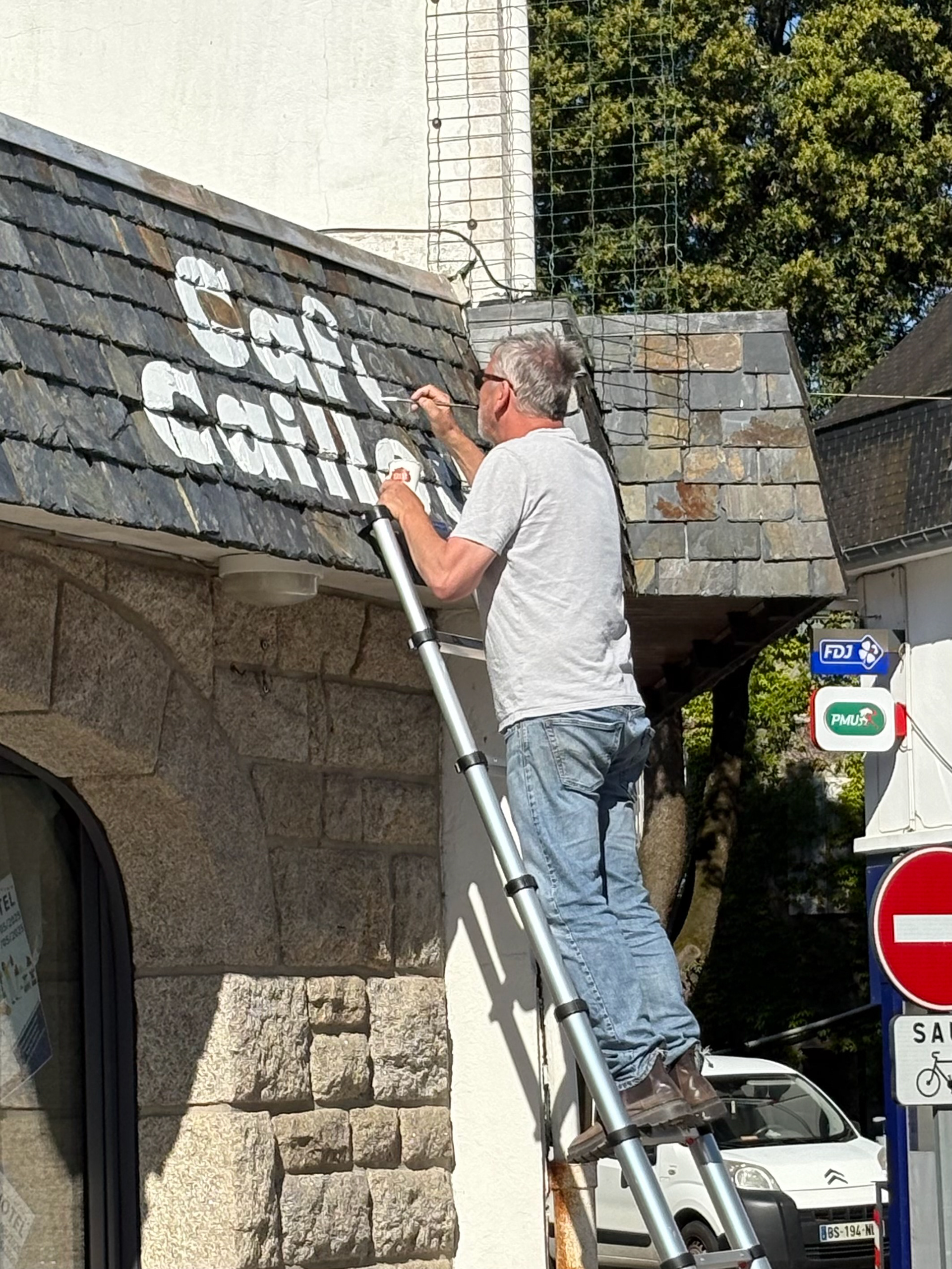 Lettres peintes à la main sur ardoises et enseigne drapeau│Café Caillou│Saint Pierre Quiberon